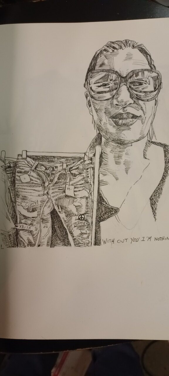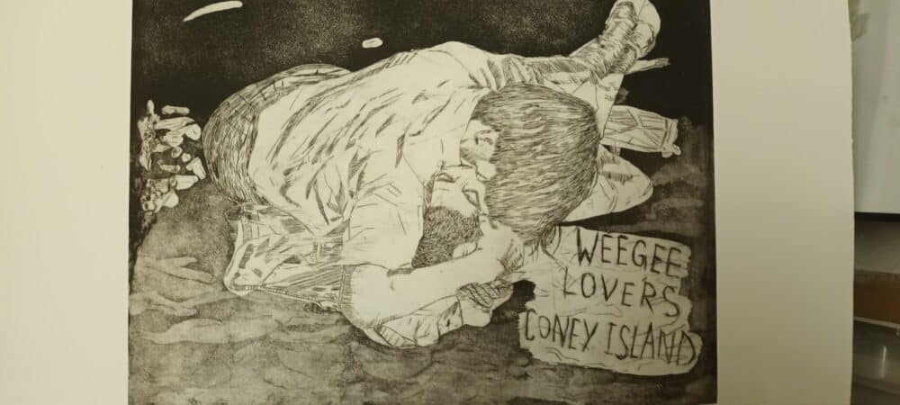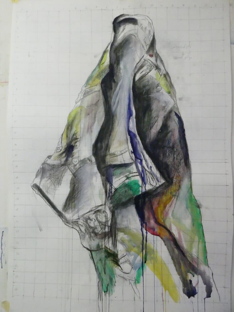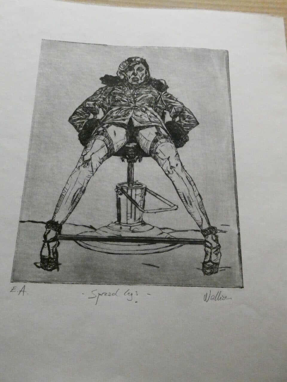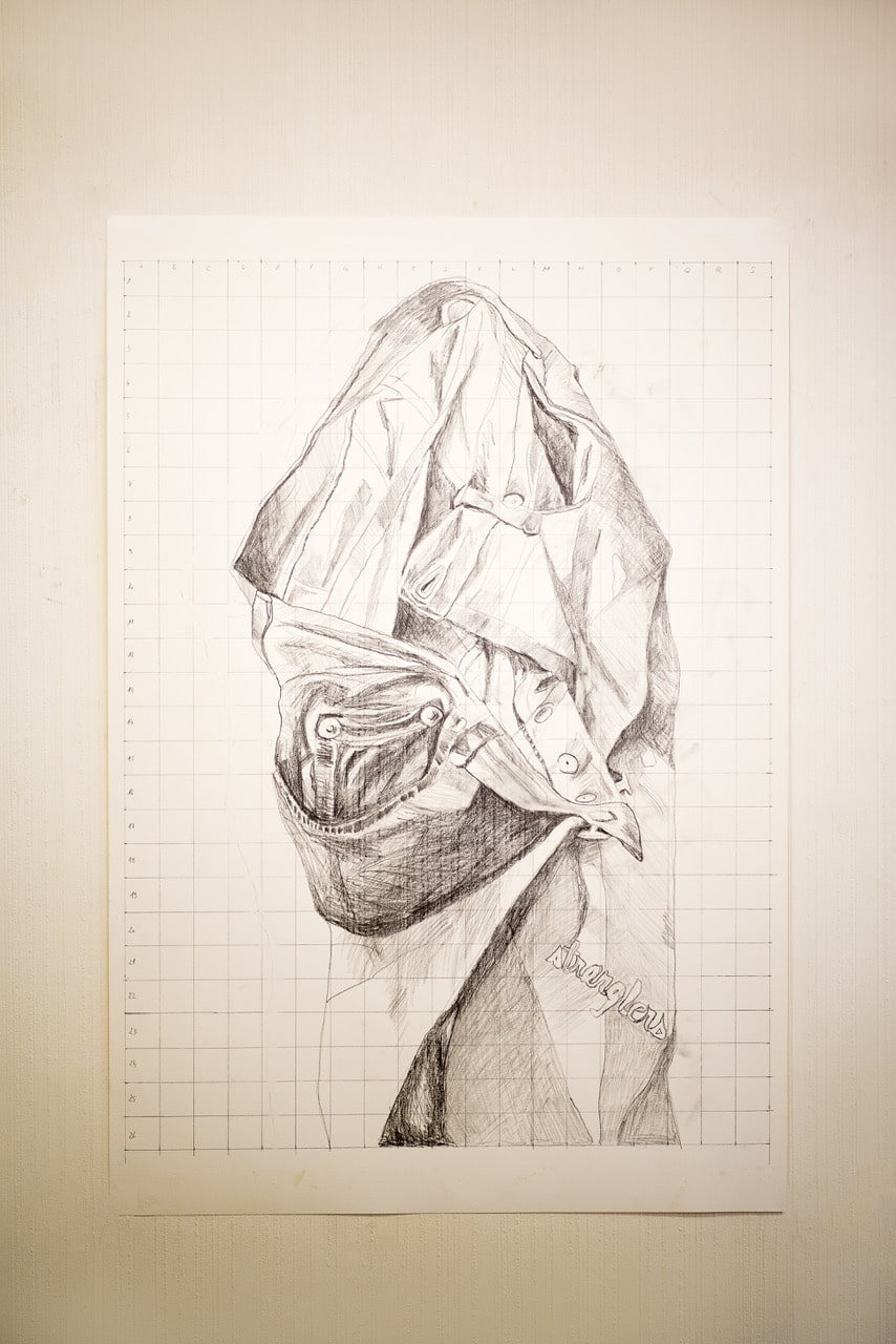 MIT STICHEL und Kaltnadel auf Kupferplatten graviert, entstehen Porträts von Punks und Indianern sowie Serien von Jeans-Stilleben als Symbol für Freiheit und Unabhängigkeit.