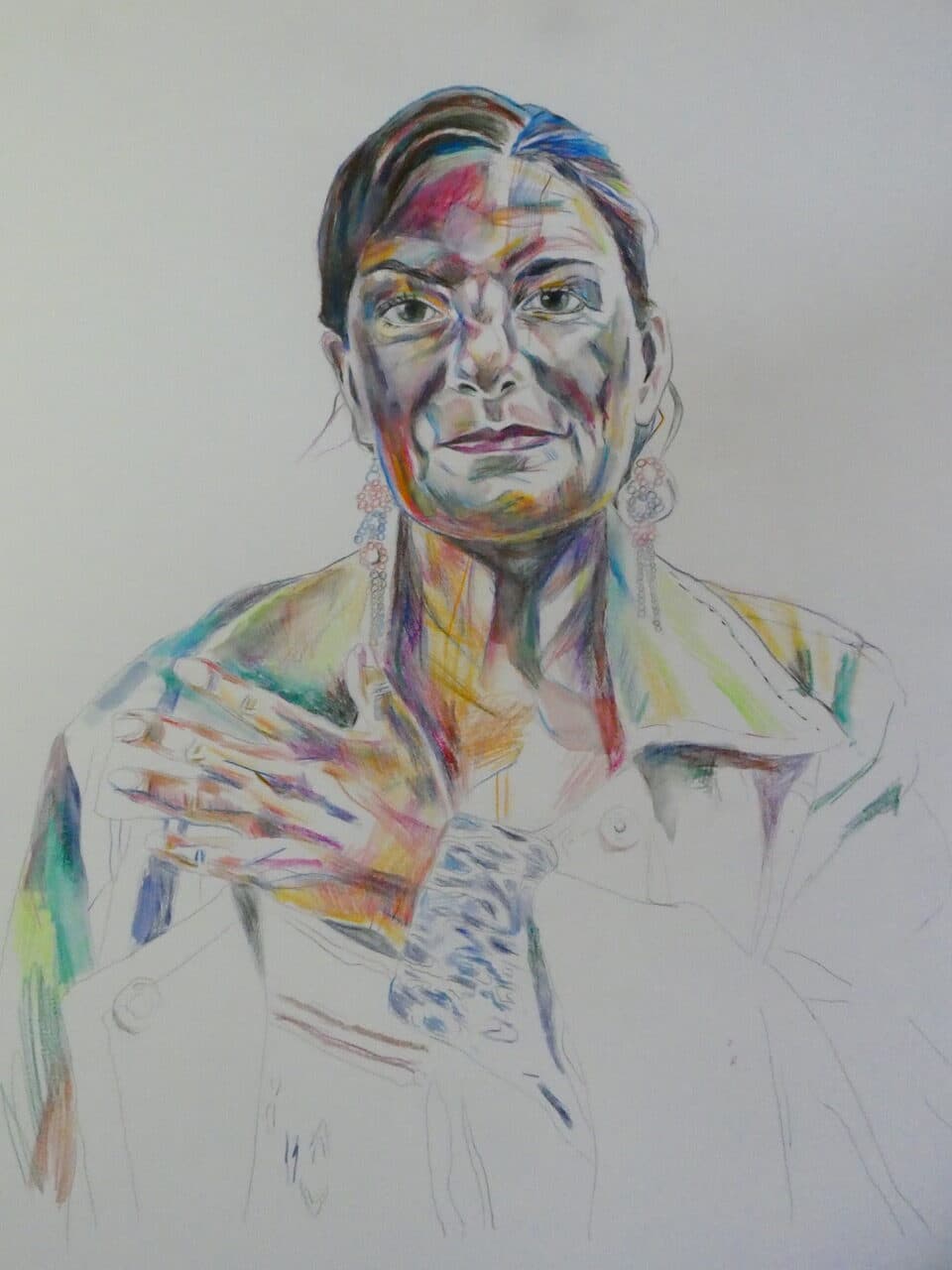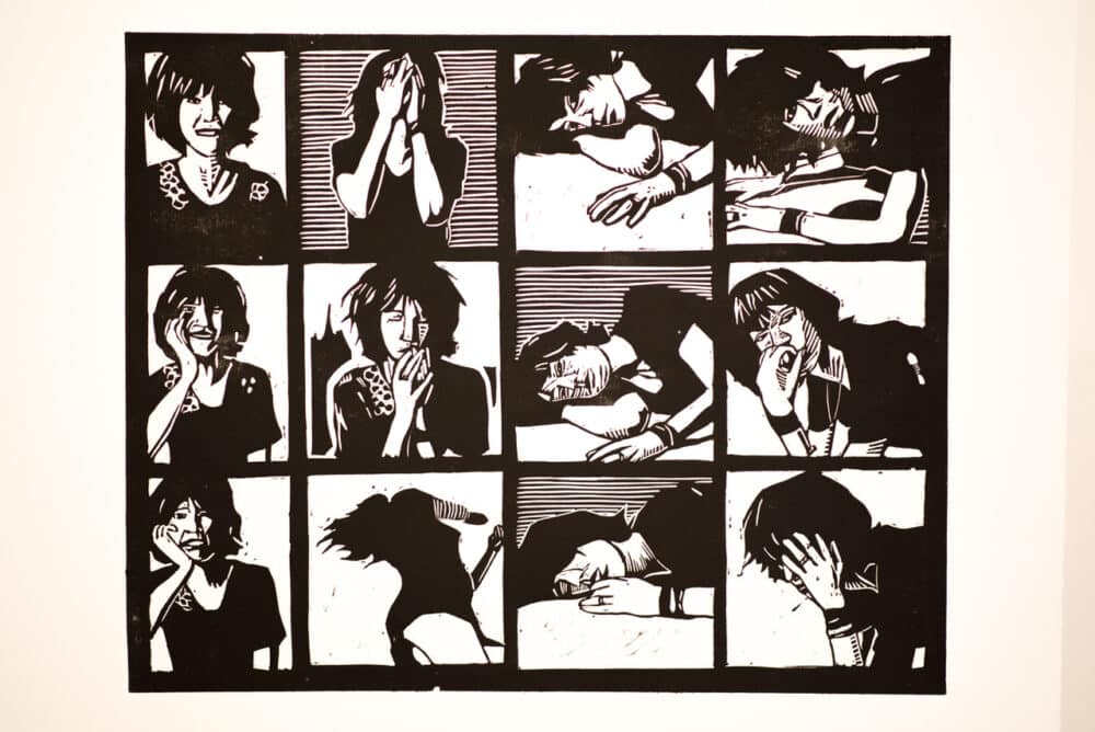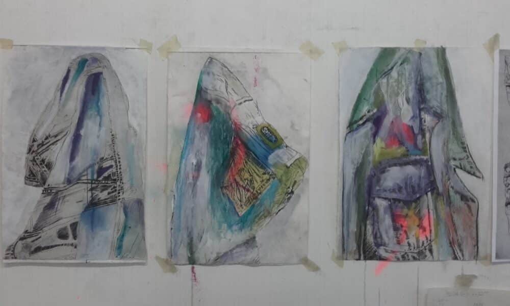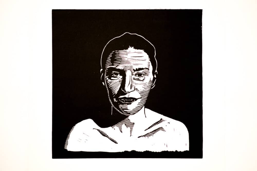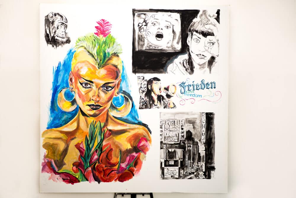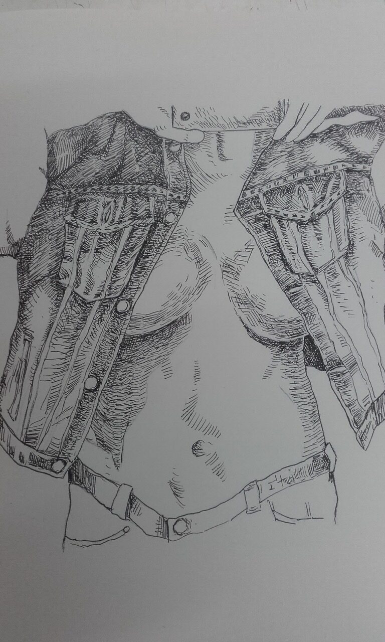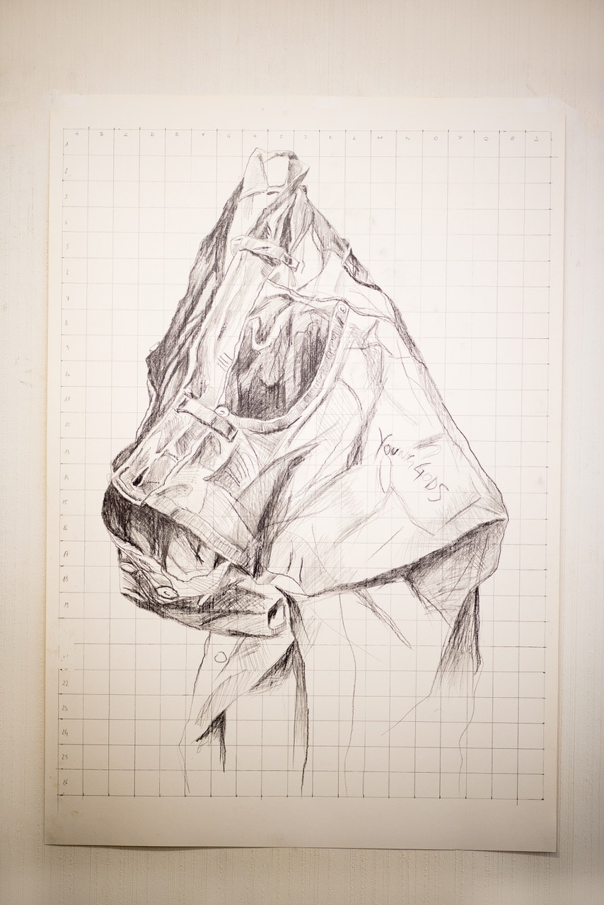 MIT STICHEL und Kaltnadel auf Kupferplatten graviert, entstehen Porträts von Punks und Indianern sowie Serien von Jeans-Stilleben als Symbol für Freiheit und Unabhängigkeit.
