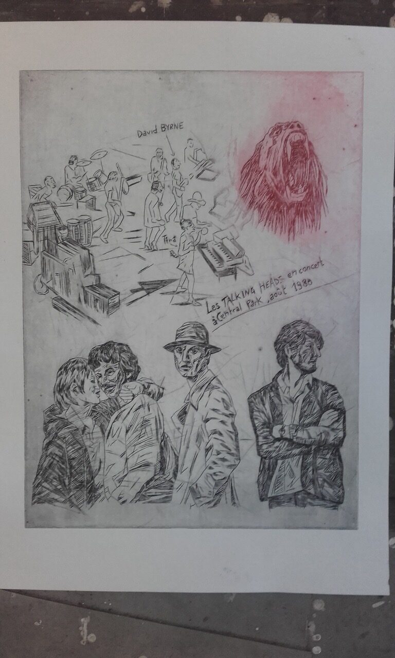 Le Rock’n’roll occupe une place importante dans ma vie. Adepte des soirées garage du Grillen, j’aime l’énergie que dégage cette musique, son efficacité et sa créativité. On croisera dans mes choix picturaux, les Smiths, les Clashs, Nina Hagen, Iggy Pop… .